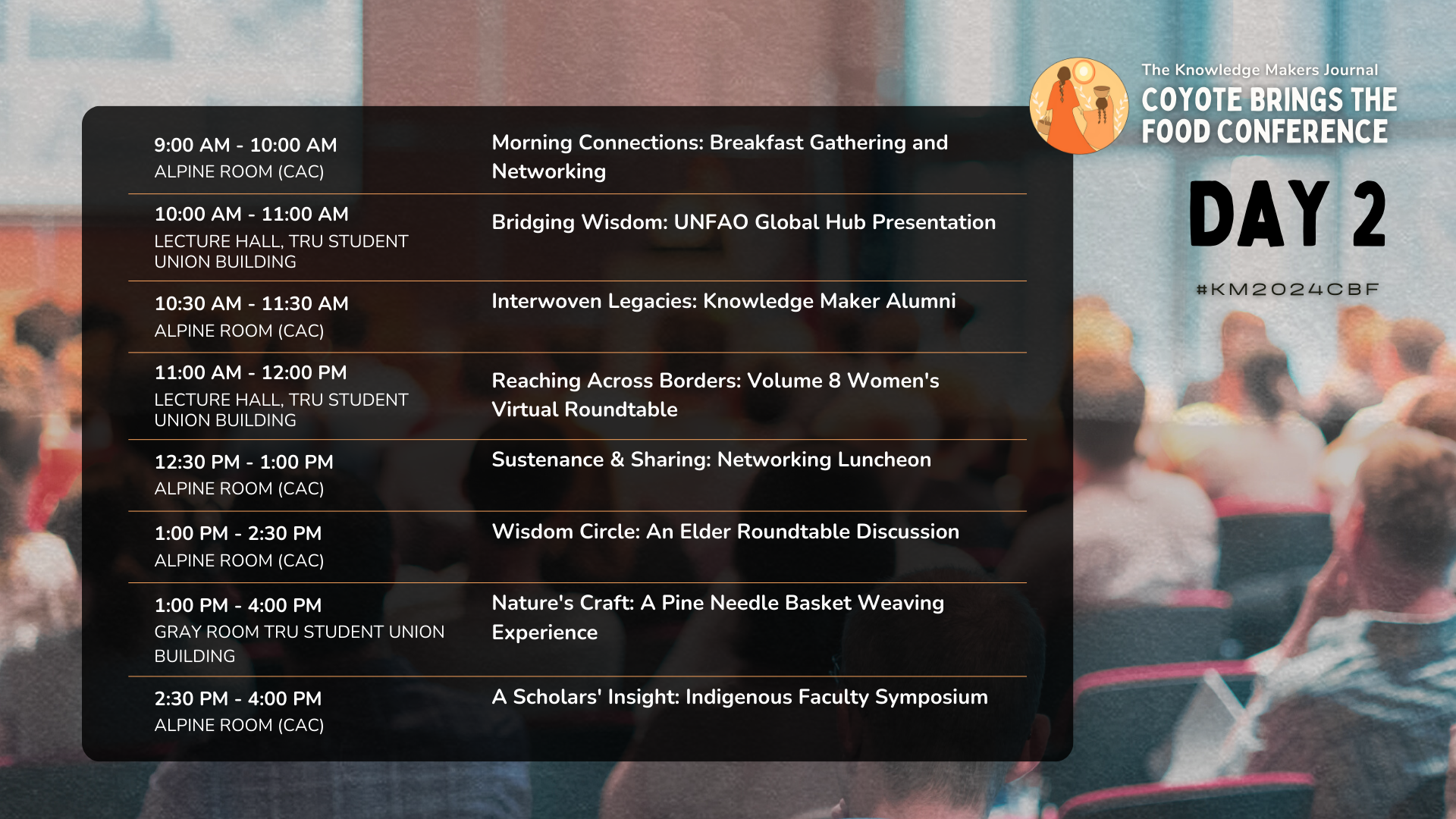 From March 11 to 12 Knowledge Makers Journal program in partnership with the United Nations Food and Agriculture Organization hosted a conference centered around the 16 Indigenous women authors of the eighth publication volume.